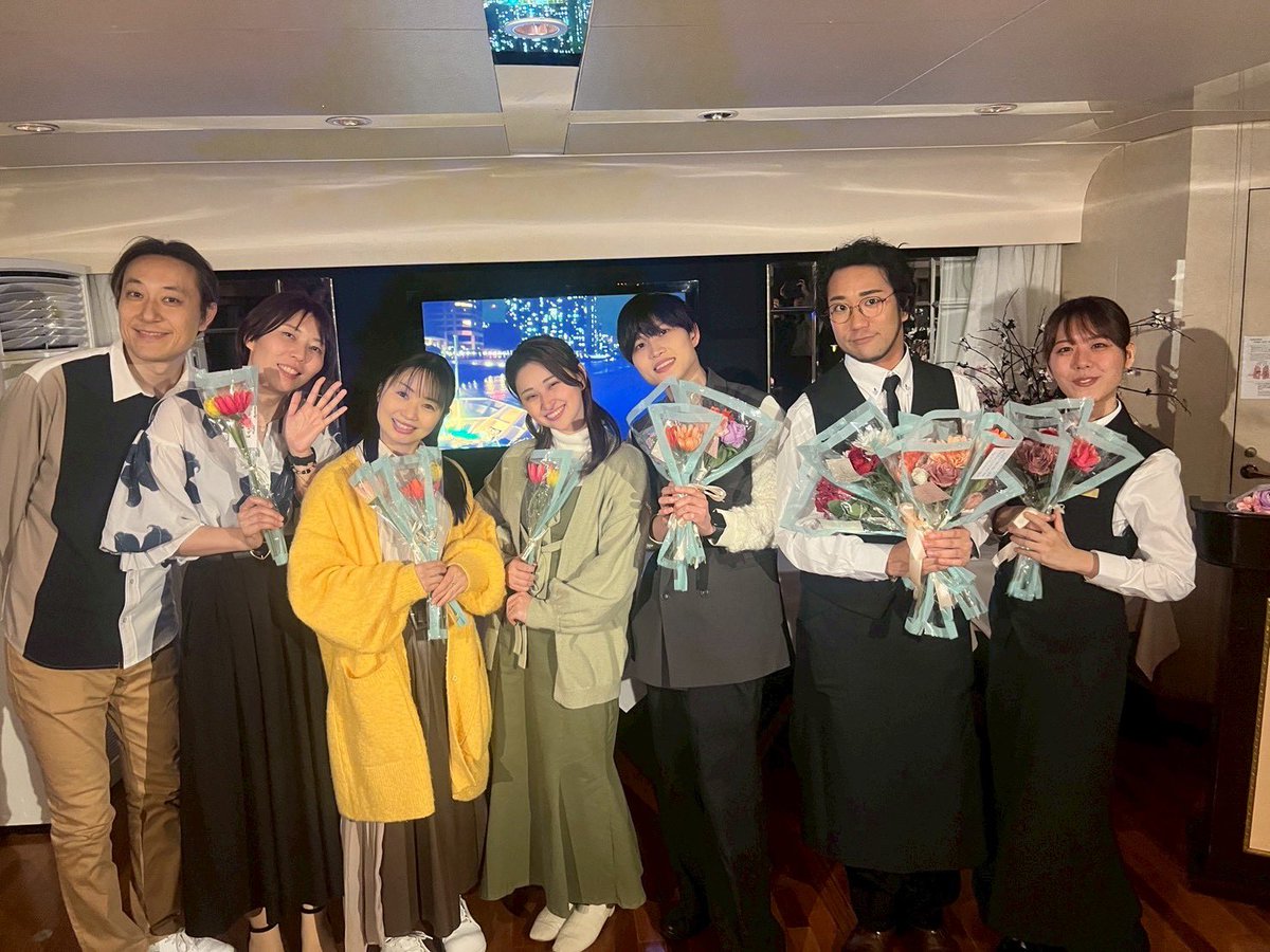 レストランでコース料理食べながらお芝居みつつ 最後はみんなでクルーズ船へ移動して少し観劇🤍 そのあとは30〜40分ほど自由時間があり 飲み放題かつ役者と話したい放題! お花的投げ銭あり💐 推しの役者へメッセージカードともに直接渡せます🥰 https://t.co/303rF5oVVx