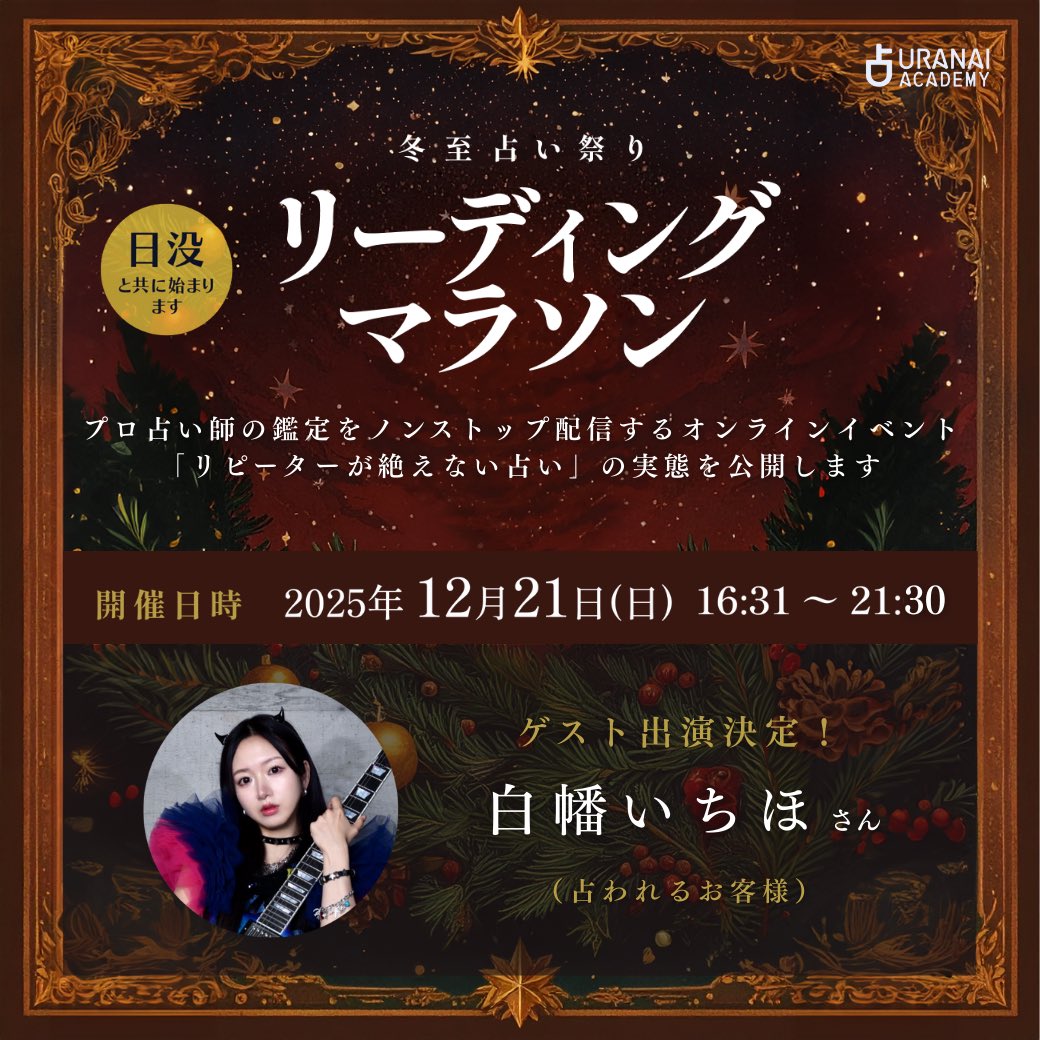 💙出演情報💙 12月21日(日)16:31〜21:30 冬至占い祭り リーディングマラソン 占われゲストとして出演させていただきます🔮 ZOOMでご視聴いただけます✨ プロの占い師による鑑定の凄さやワードチョイスなどを学べるイベント! とても楽しみです! https://t.co/zKJ63wPtmm https://t.co/1HLD54HgPw