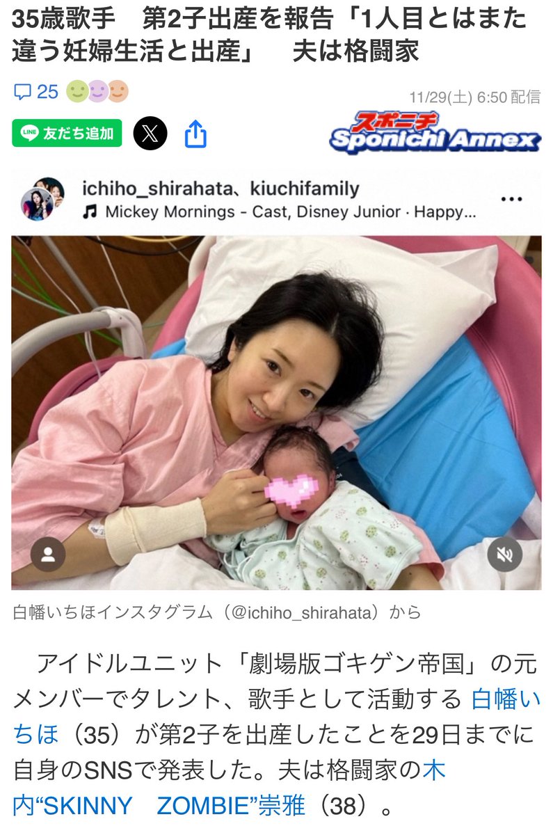 出産第二ラウンド 試合時間は17時間でした👊 (ドーピングあり) スポニチアネックスさんありがとうございます! 35歳歌手 第2子出産を報告「1人目とはまた違う妊婦生活と出産」 夫は格闘家(スポニチアネックス) https://t.co/EBC8BMdTgs #Yahooニュース https://t.co/Icz4dhjgha